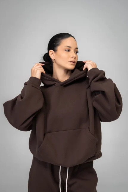 Czekoladowy komplet dresowy oversize bluza z kapturem i spodnie
