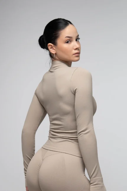Bezszwowa bluza na zamek beżowa