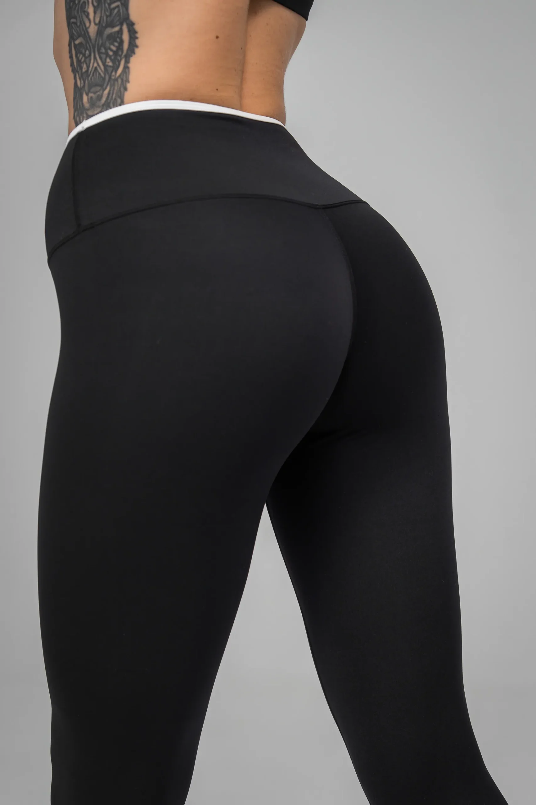 Czarne legginsy z wysokim stanem i białą lamówką – sportowy styl, który podkreśla sylwetkę