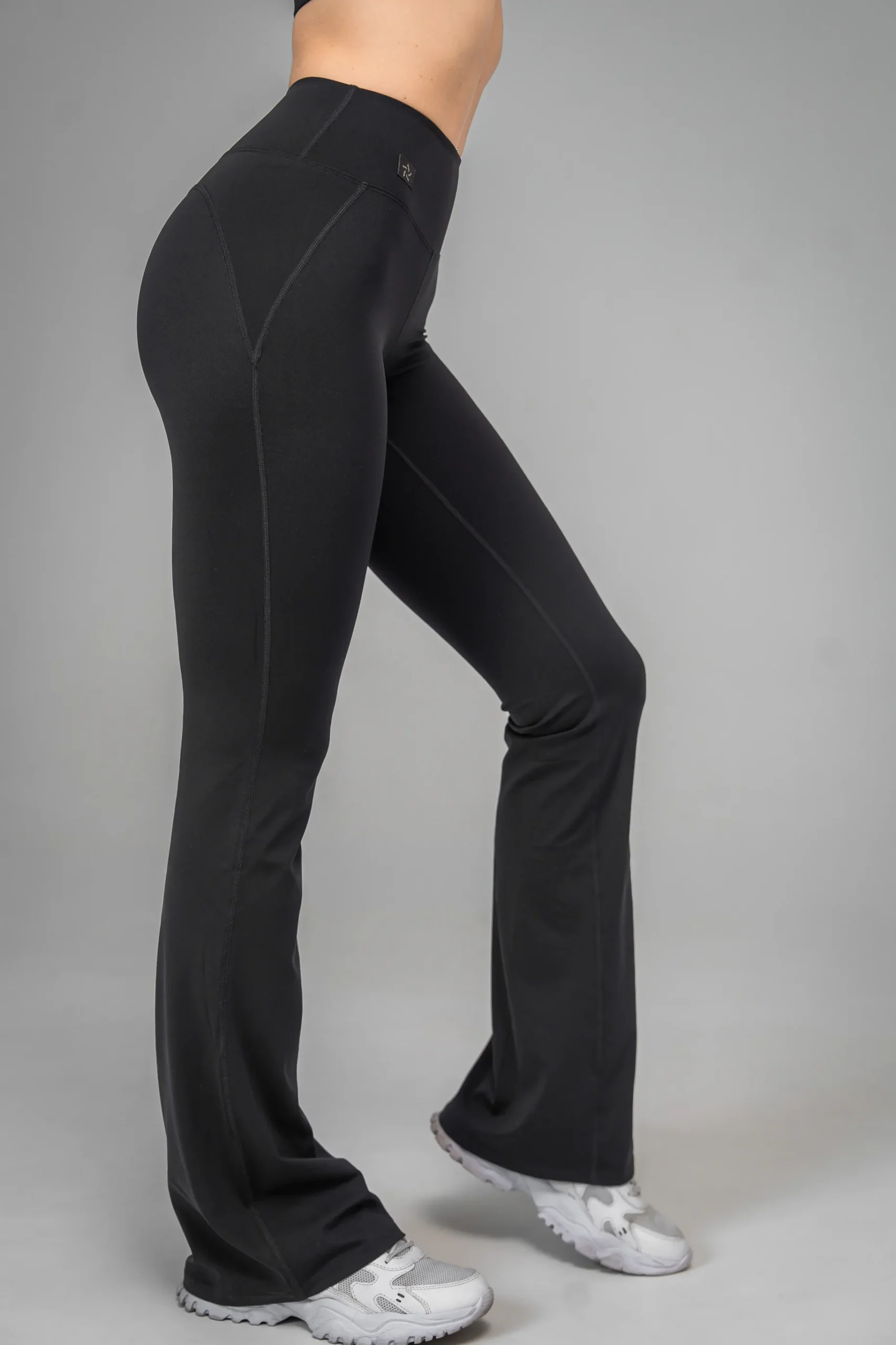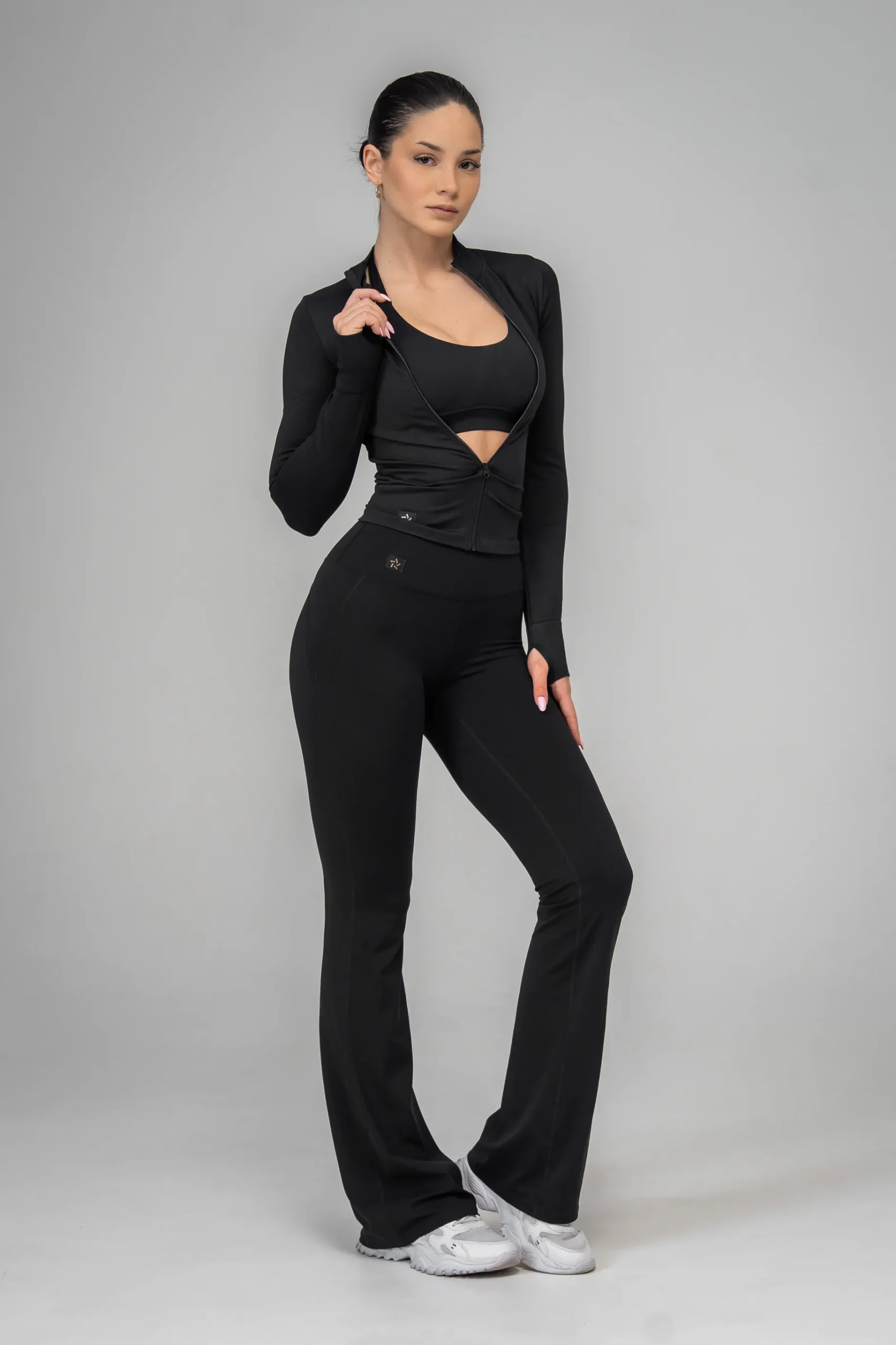 Te czarne legginsy dzwony to idealne połączenie kobiecego kroju i sportowej wygody – stworzone po to, abyś czuła się pewnie, stylowo i komfortowo w każdej sytuacji.