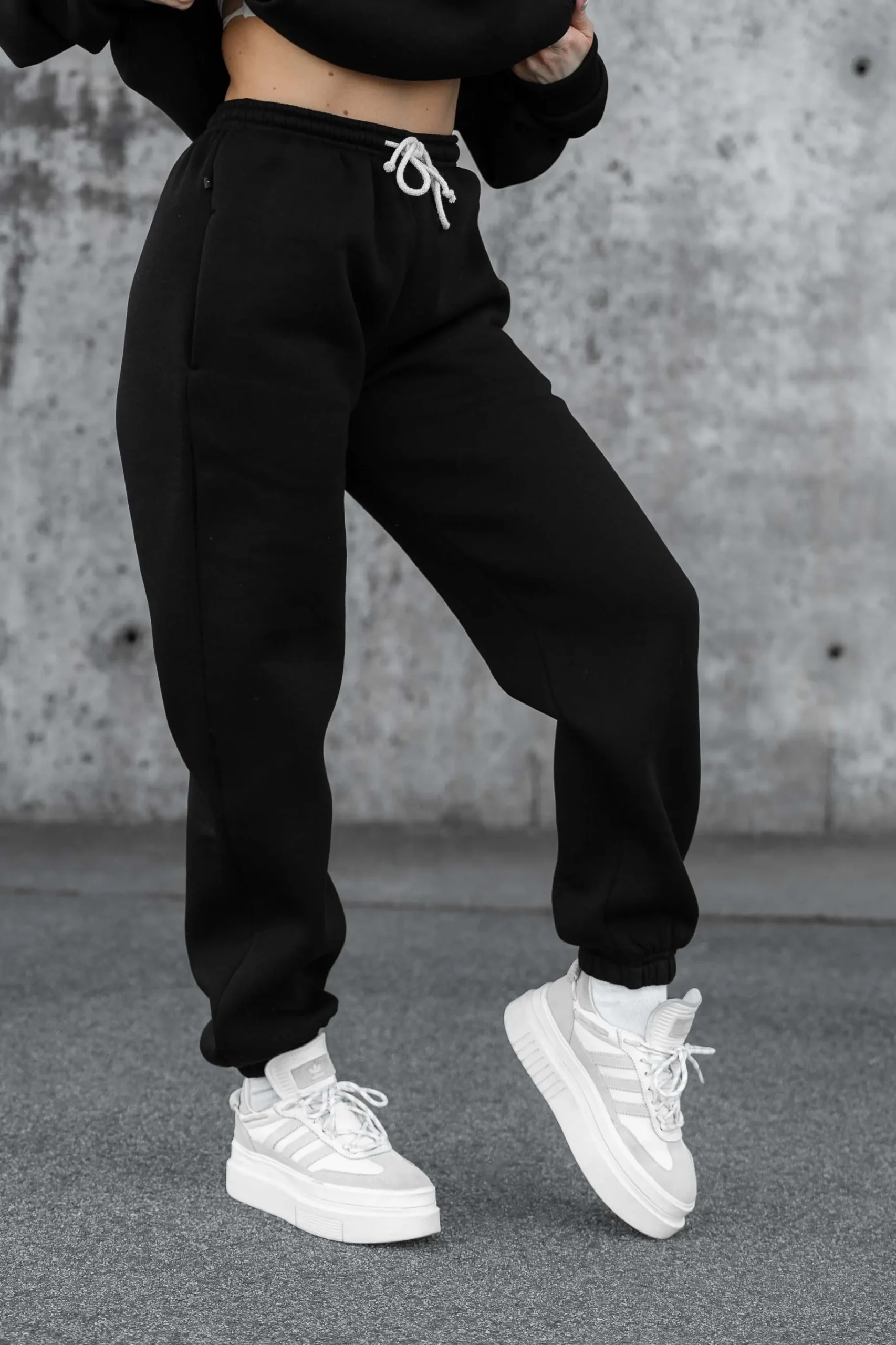 Kolor tego zestawu buduje całą stylizację. Klasyczna czerń nadaje kompletowi elegancki, minimalistyczny charakter, który nigdy nie wychodzi z mody. Ten bawełniany komplet dresowy czarny to idealna propozycja dla kobiet, które chcą połączyć maksymalną wygodę z uniwersalnym, stylowym wyglądem.