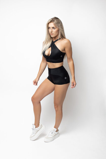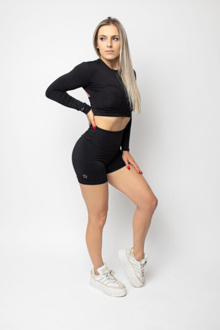 Kolejna odsłona kultowych legginsów sygnowanych marką Gym Star. Tym razem w modnej wersji biker, w stylu popularnych w latach 90’ kolarek o długości przed kolano. W wersji Gym Star bikery mają modelujący talię szeroki pas, który znakomicie wydłuża sylwetkę i eksponuje kobiece kształty. Spodenki Black Ruff zaprojektowane zostały dla aktywnych kobiet, które doskonale znają siłę swojego seksapilu i uwielbiają podkreślać walory swojego ciała. Wymodelowane ciało podczas intensywnych treningów zasługuje na właściwą oprawę. Pomogą Ci w tym nasze bikery, które staną się nie tylko Twoim ulubionym elementem sportowej garderoby, ale i przełamią Twój codzienny ubiór na lato. Konstrukcja bikerów została tak stworzona, by wyeksponować krągłe pośladki, podnieść je i zawęzić talię. Co więcej, Twoja figura zyska więcej kobiecości. Bikery uwydatnią wygląd Twoich bioder, wydobywając z nich to, co najpiękniejsze. Pożądana sylwetki klepsydry nareszcie jest możliwa, również w przypadku szczupłej sylwetki.