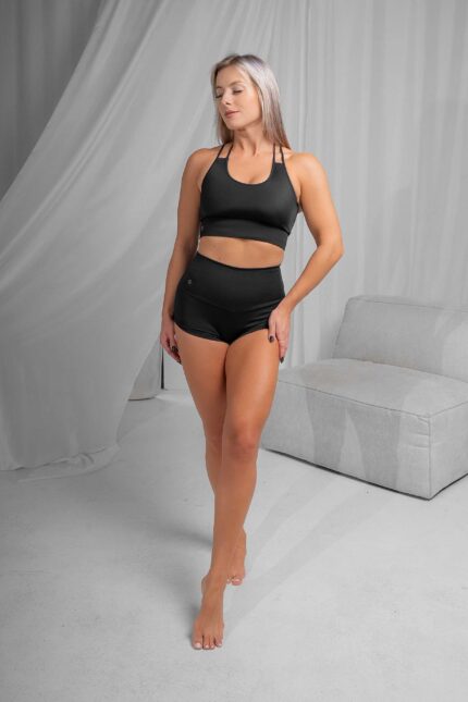 Czarny kombinezon sportowy krótki z marszczeniami na pośladkach – wyjątkowy styl i komfort dla aktywnych kobiet