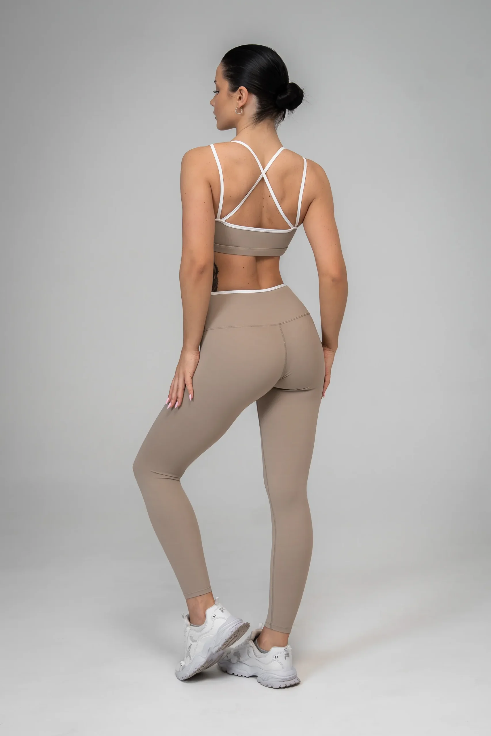 Kremowe legginsy z białą lamówką – jasna odsłona sportowej elegancji