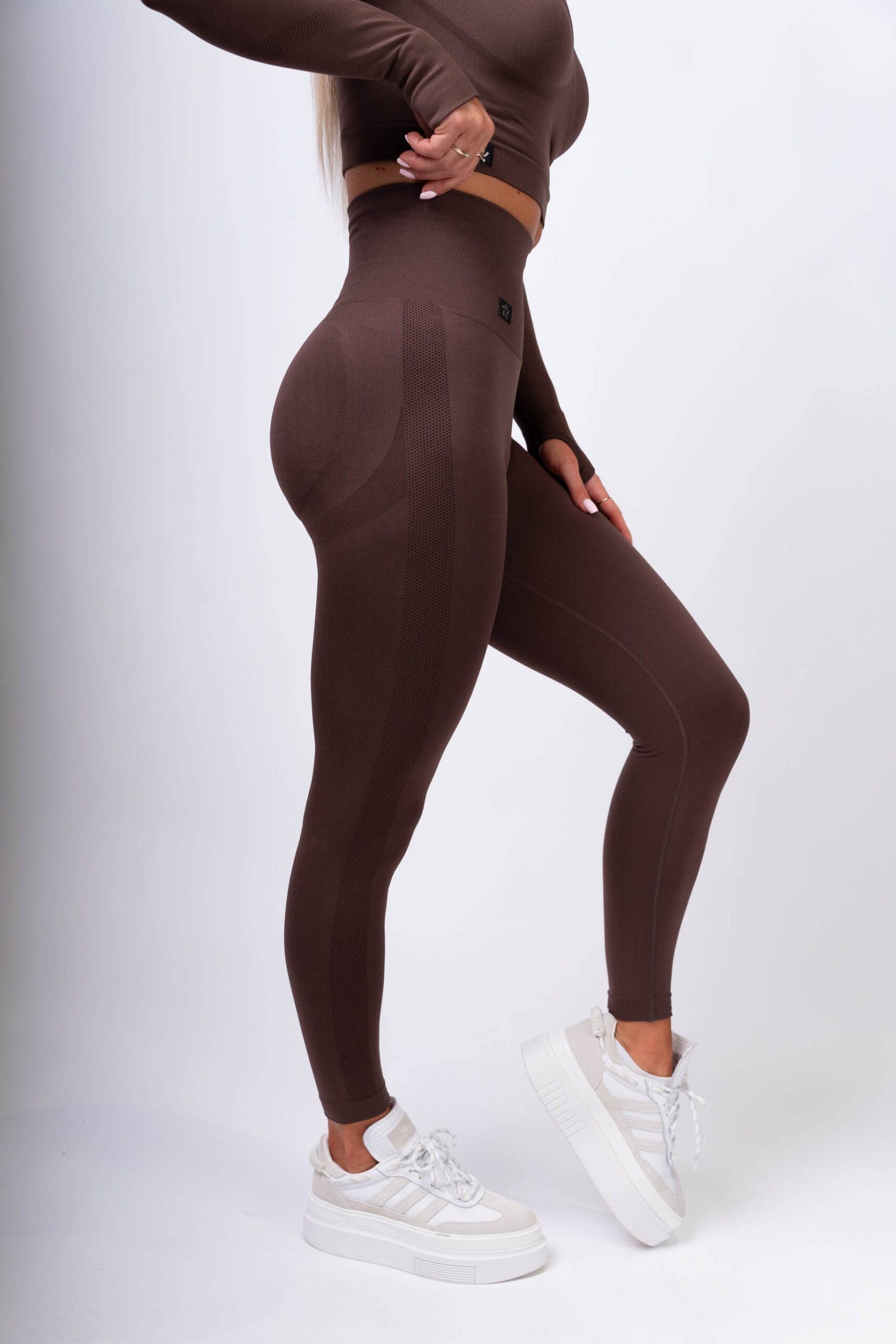 Legginsy Bezszwowe Czekoladowe Push-Up z Wysokim Stanem – Elegancja i Komfort w Brązowym Wydaniu