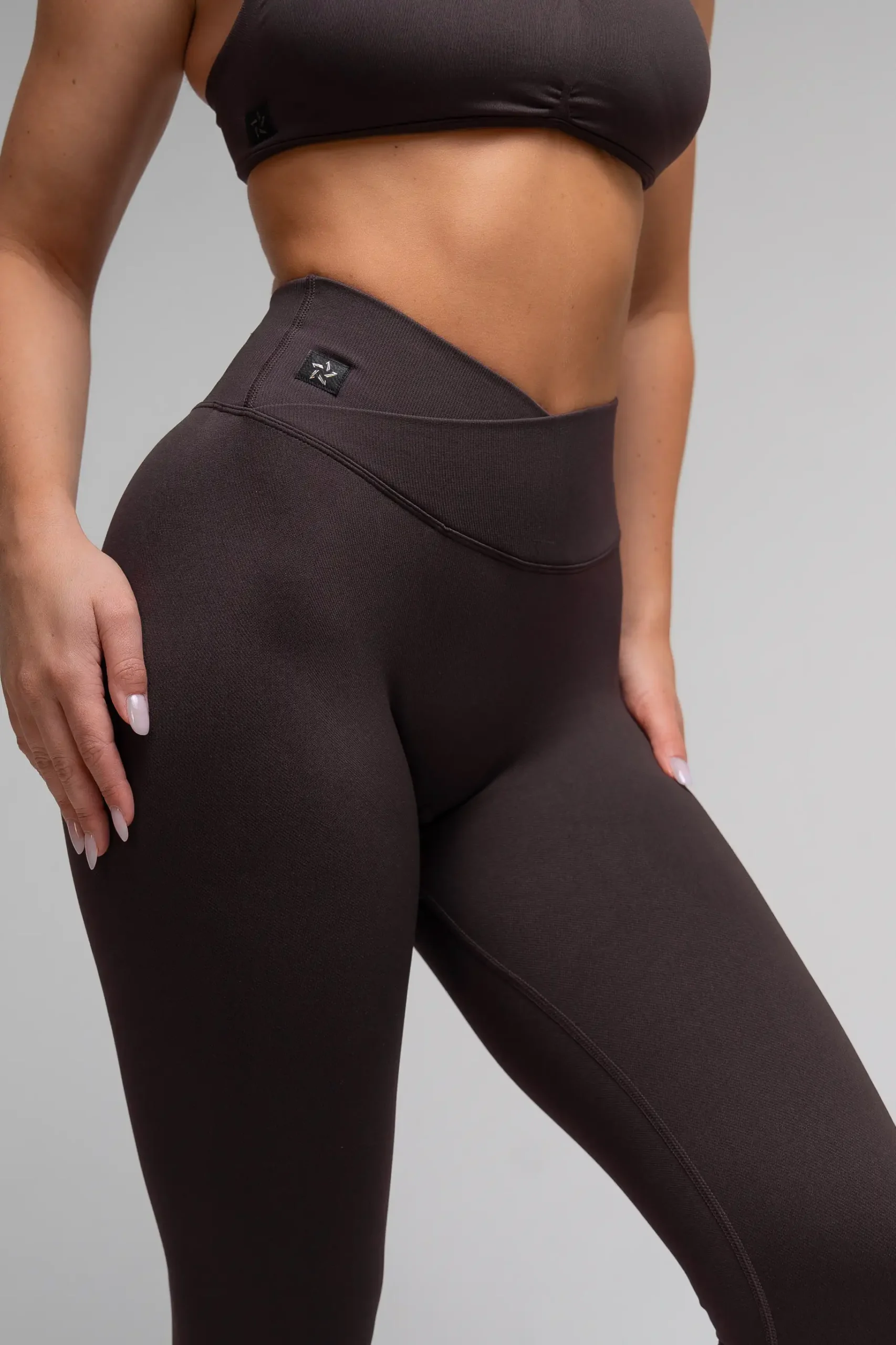Legginsy bezszwowe Push-Up V Cross ciemnobrązowe zapewnią Ci komfort, świetny wygląd i pewność siebie.