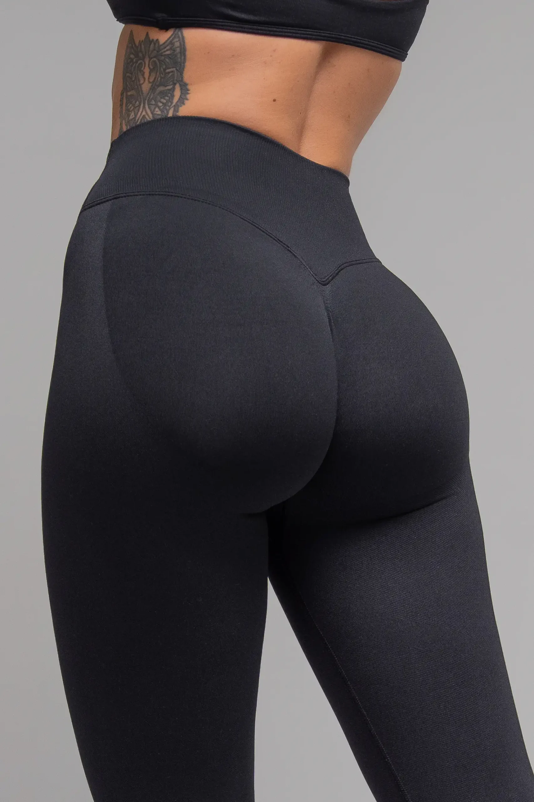 Legginsy bezszwowe Push-Up V-Cross czarne – modelowanie sylwetki i ponadczasowy styl.