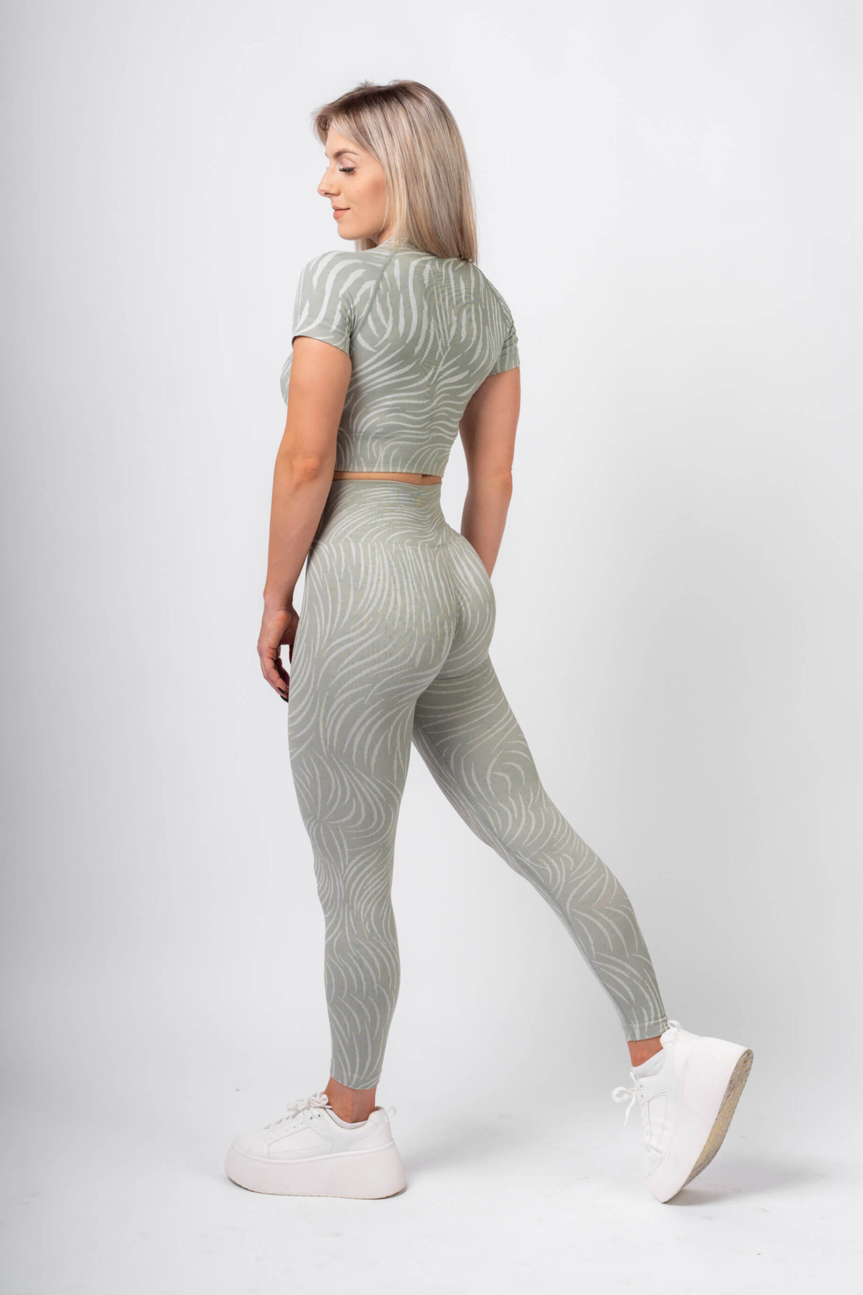 Print top bezszwowy oliwkowy doskonale sprawdzi się podczas każdej aktywności – od intensywnych treningów, przez relaksujące jogi, po codzienne stylizacje. Jego uniwersalny kolor łatwo dopasuje się do reszty garderoby, dodając elegancji i nowoczesności każdej stylizacji.