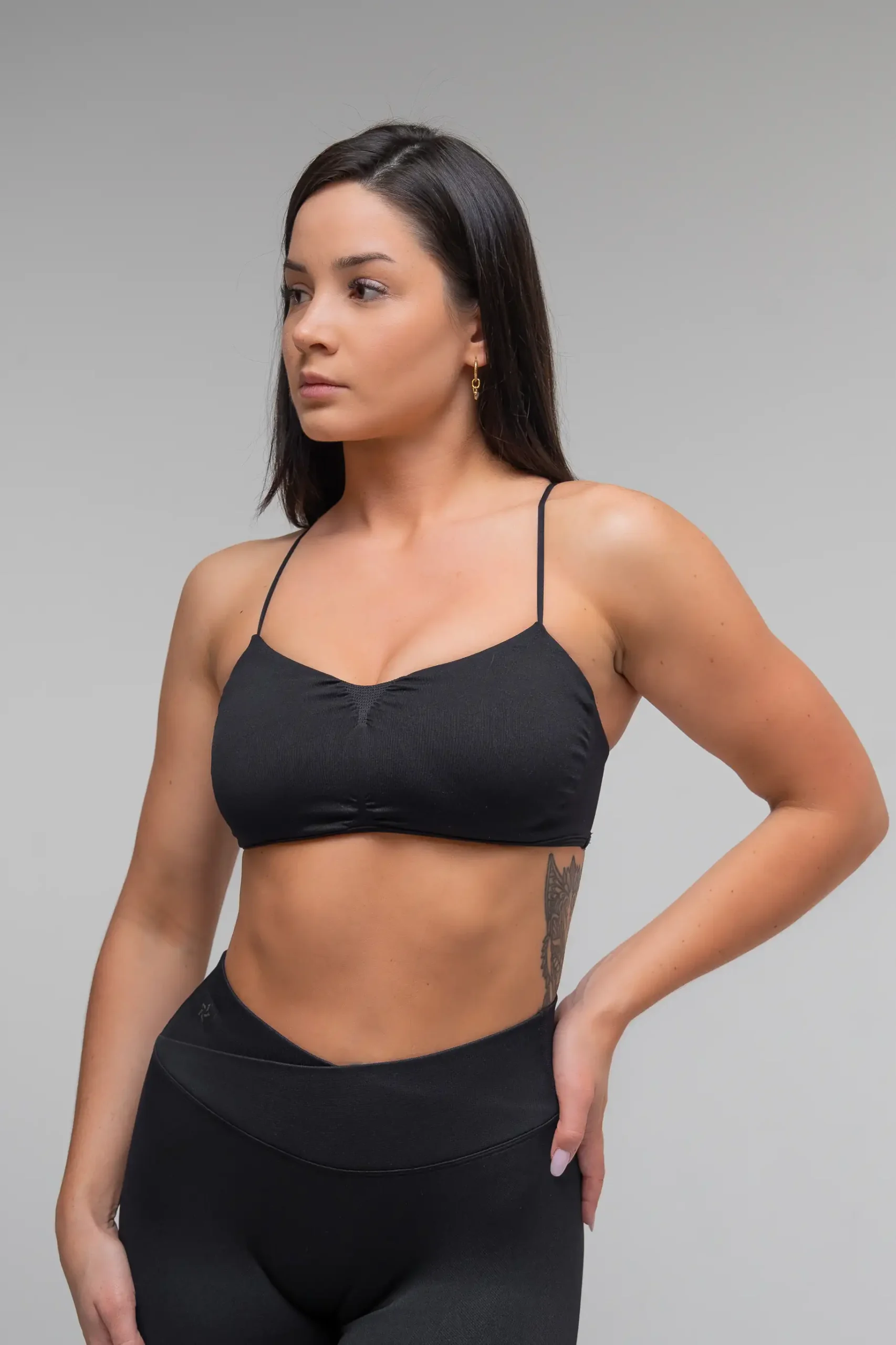 Top bezszwowy V-Cross czarny – minimalistyczny styl i pewne podtrzymanie.