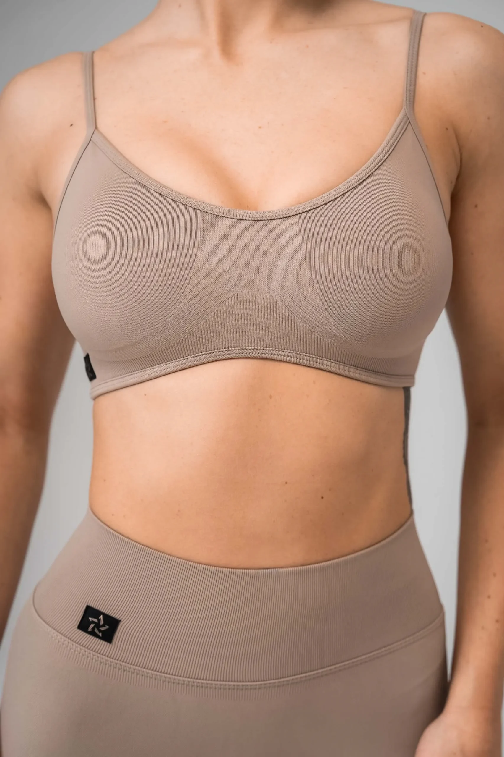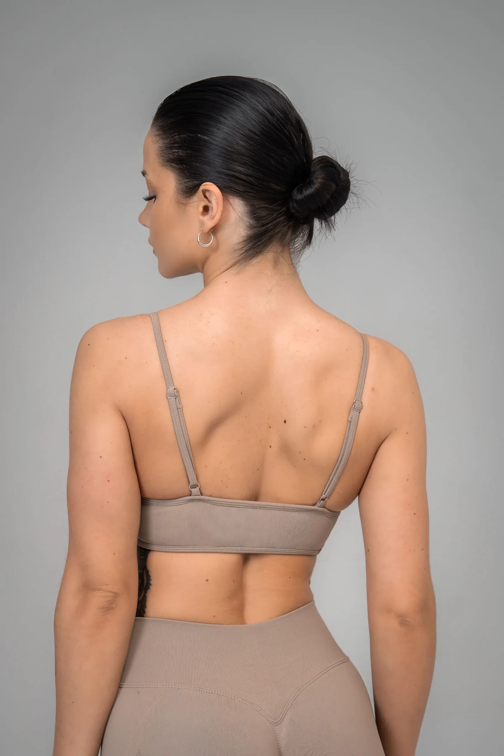 Top bezszwowy z regulowanymi ramiączkami 3.0 beżowy – lekkość, dopasowanie i wsparcie podczas treningu.