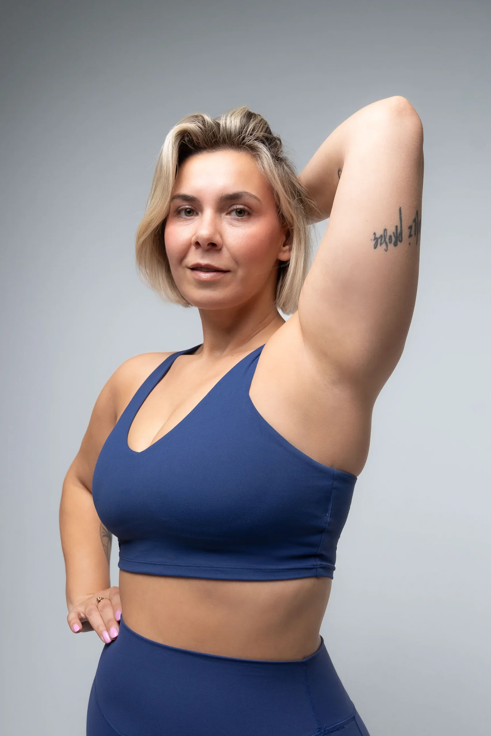 Granatowy stanik sportowy plus size – przemyślany projekt dla realnych sylwetek.