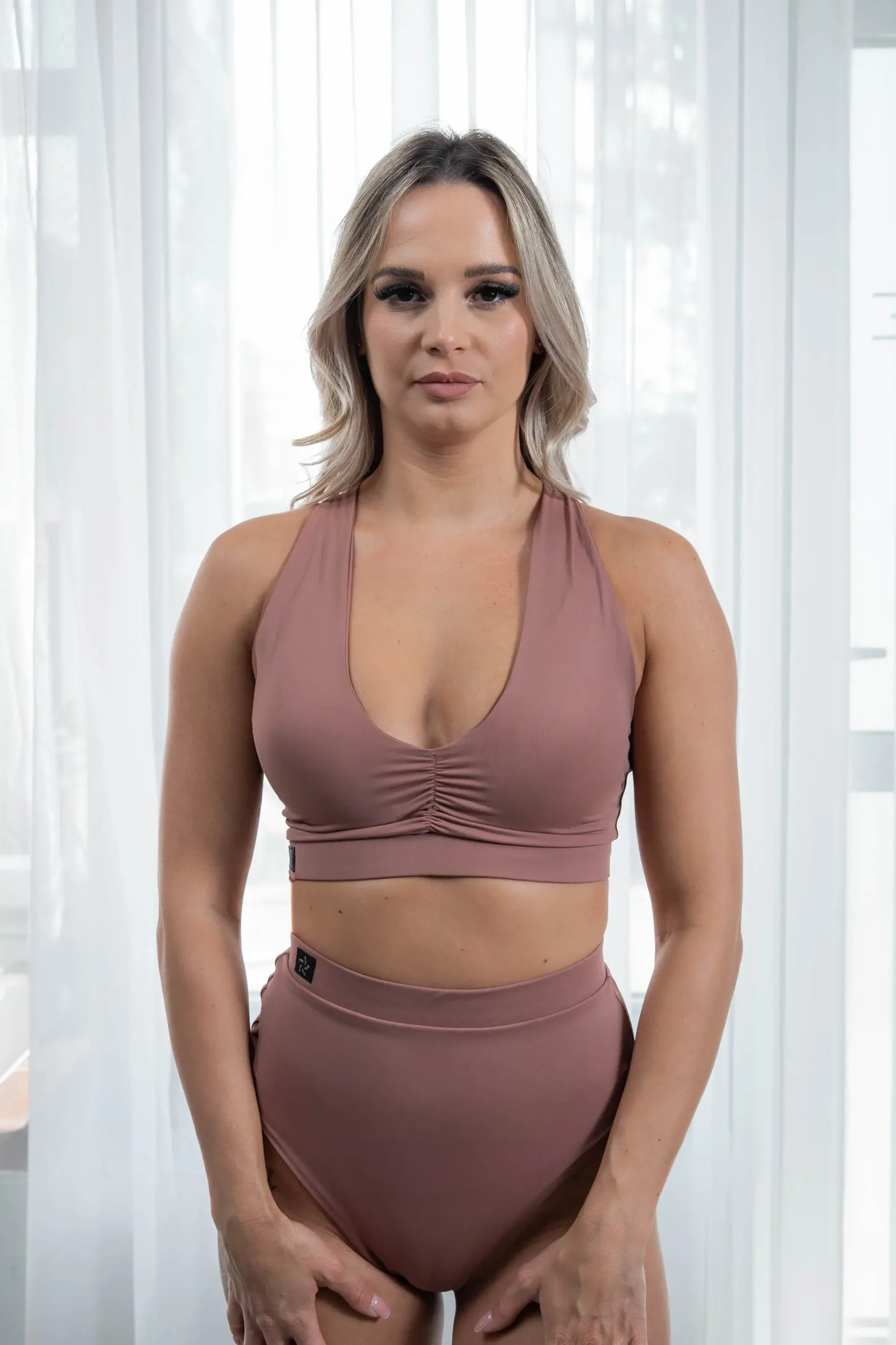 Top pole dance w kolorze brudnego różu to równowaga między subtelną estetyką a sportową funkcjonalnością. Został stworzony po to, by wspierać Twoje ciało w ruchu, a jednocześnie podkreślać Twój indywidualny styl.