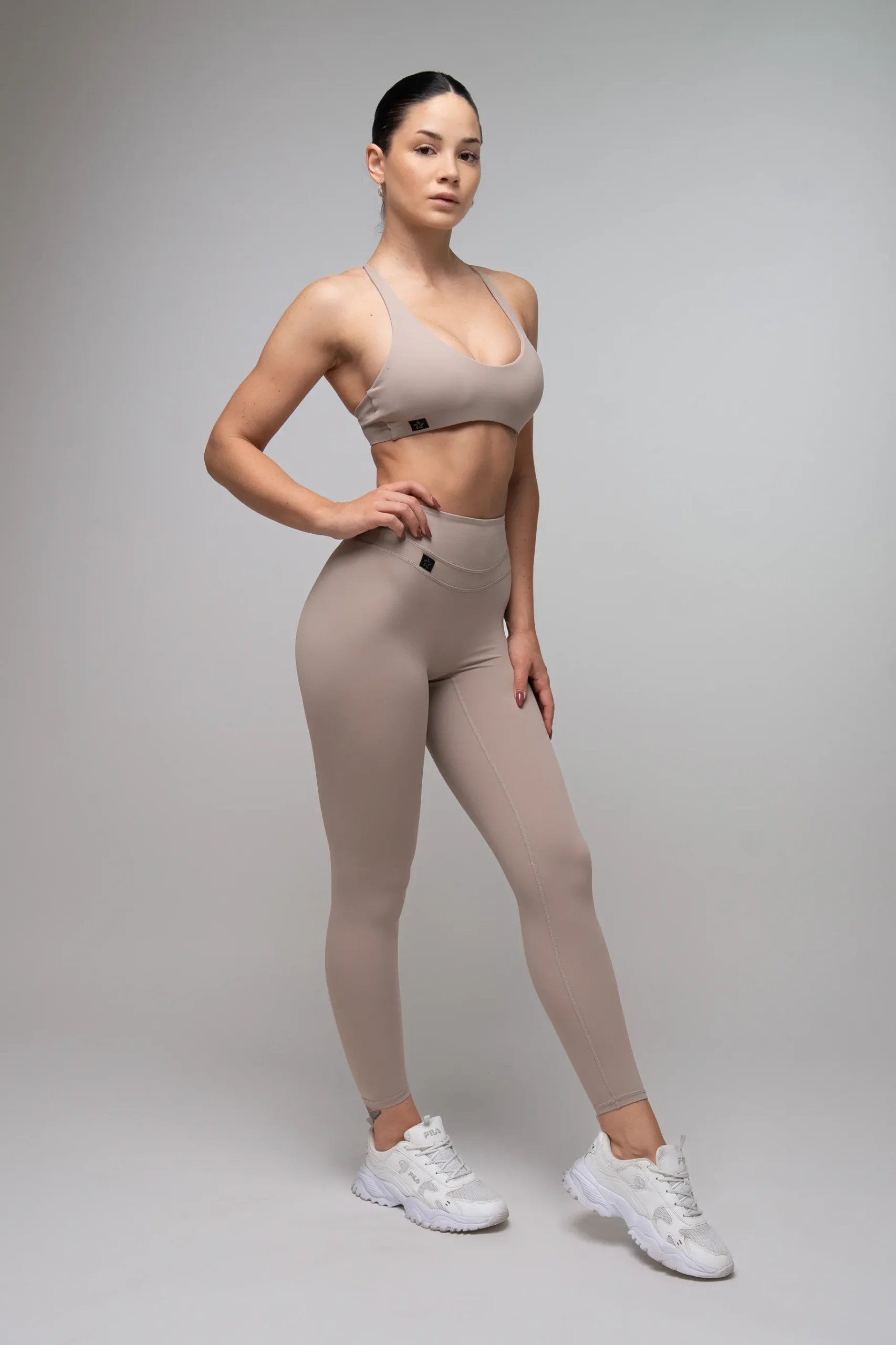 Beżowy top sportowy do codziennego noszenia i na salę treningową.