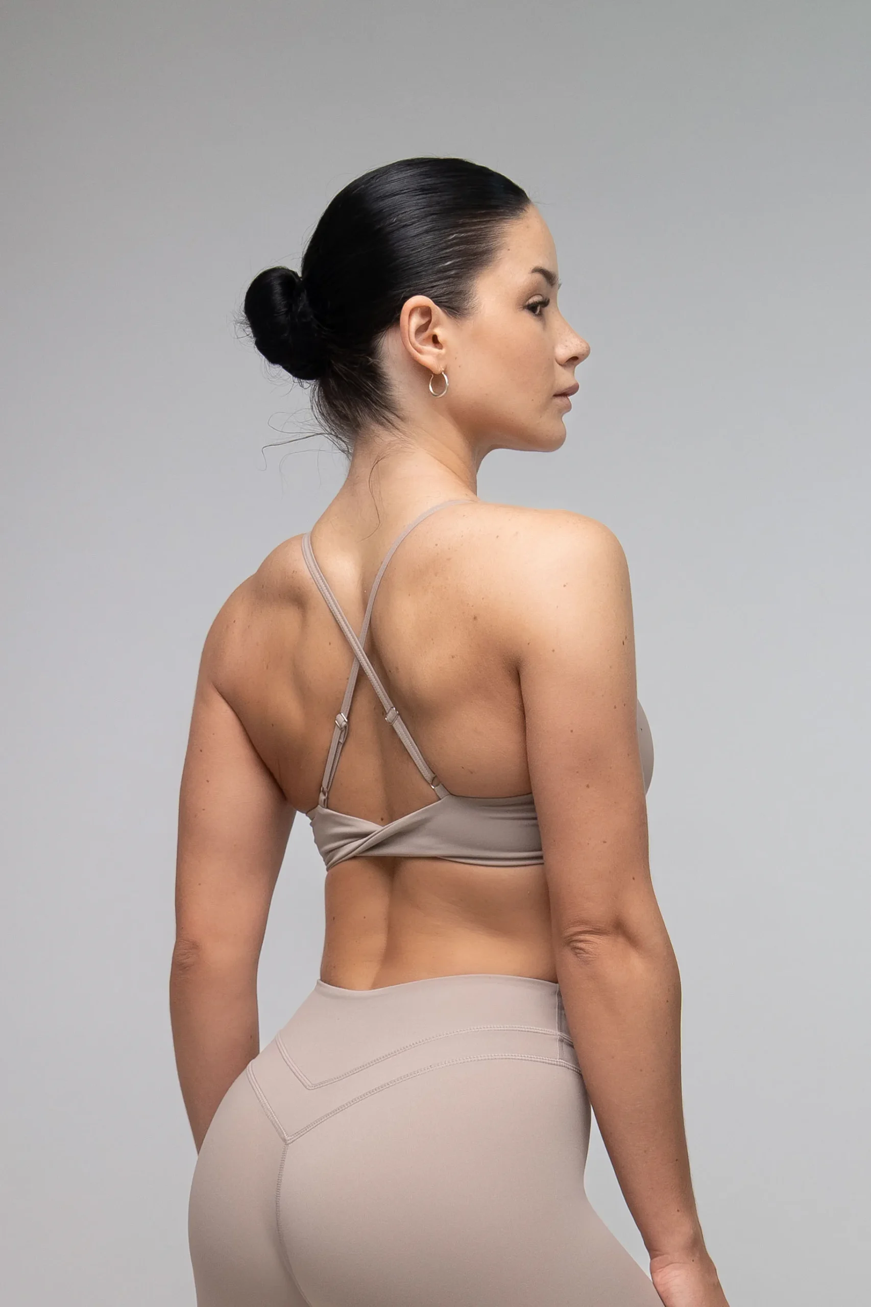 Cielisty top sportowy z krzyżowanymi ramiączkami – miękki, dyskretny i dopasowany.