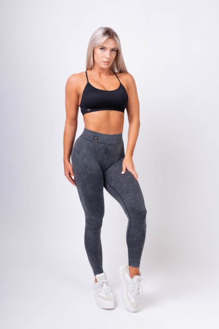 Legginsy bezszwowe V z marszczeniem jasny szary