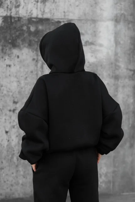 Czarny komplet dresowy oversize bluza z kapturem i spodnie