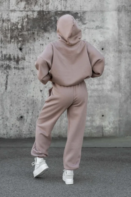 Czekoladowy komplet dresowy oversize bluza z kapturem i spodnie