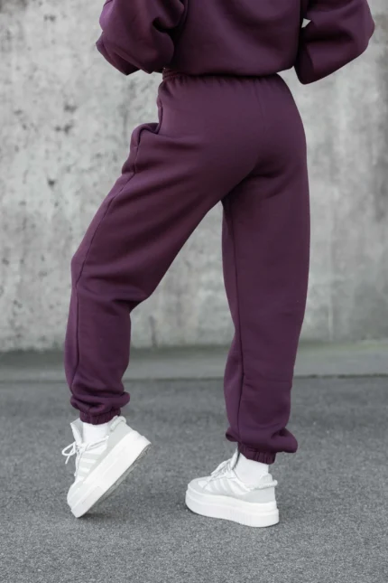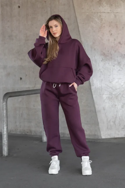 Burgundowy komplet dresowy oversize bluza z kapturem i spodnie