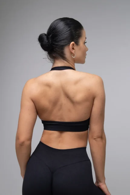 Top sportowy bezszwowy halter czarny