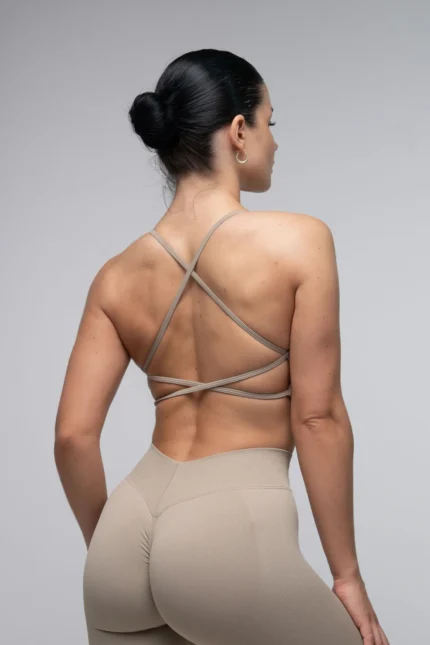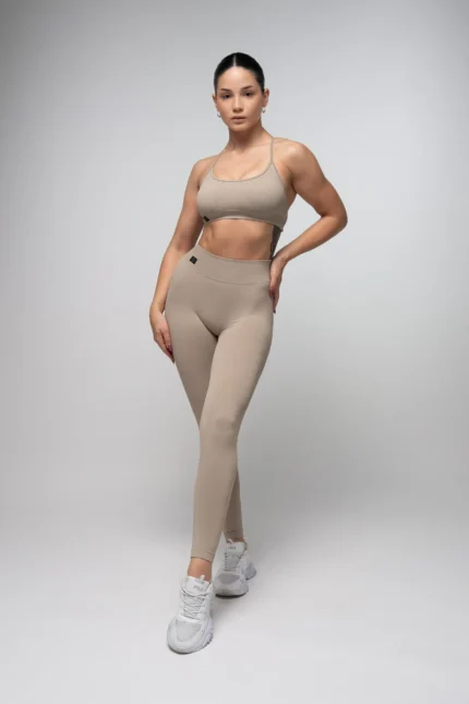Legginsy bezszwowe push-up V-cut beżowe