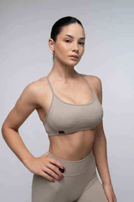 Top bezszwowy na ramiączkach beżowy