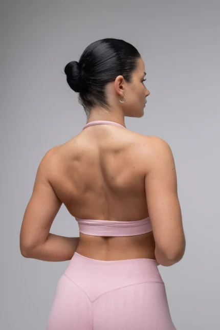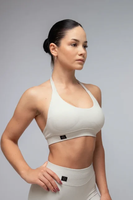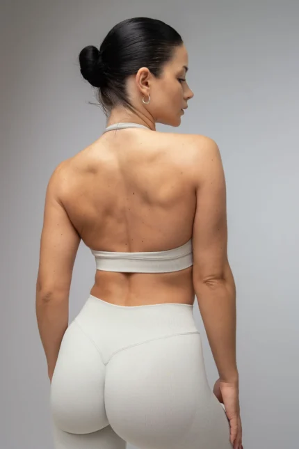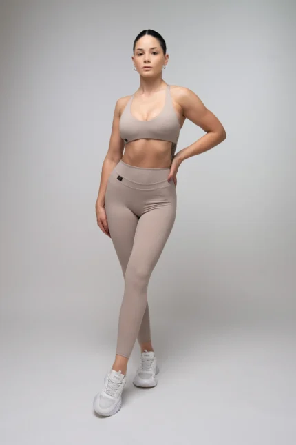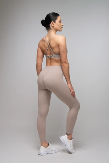 Zestaw legginsy modelujące i top z krzyżowaniem na plecach beżowy