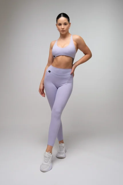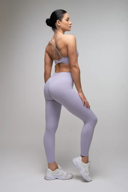 Zestaw legginsy modelujące i top z krzyżowaniem na plecach fioletowy