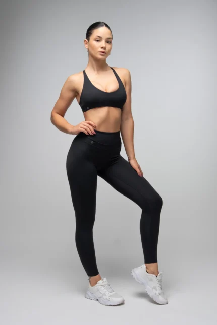 Zestaw legginsy modelujące i top z krzyżowaniem na plecach czarny