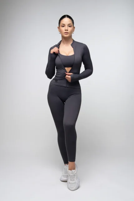 Zestaw bluza, top, legginsy bezszwowy push-up V-cut ciemnoszary