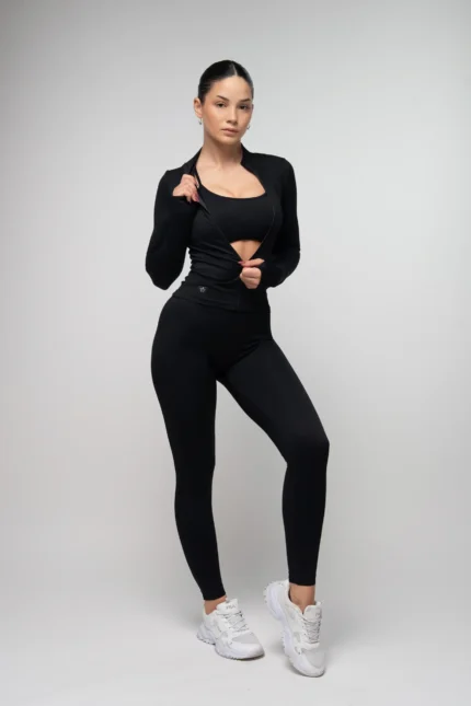 Zestaw bluza, top, legginsy bezszwowy push-up V-cut czarny