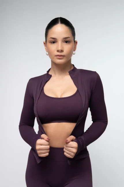 Zestaw bluza, top, legginsy bezszwowy push-up V-cut fioletowy