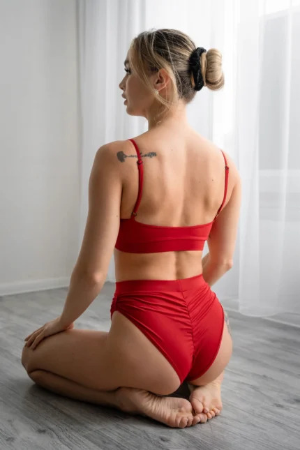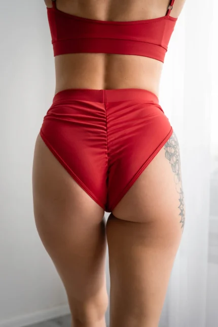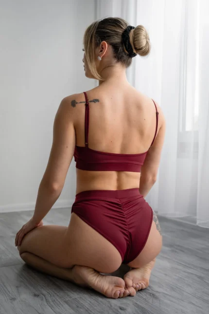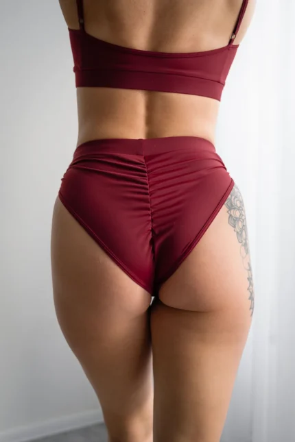 Figi pole dance z marszczeniem po bokach wiśniowe